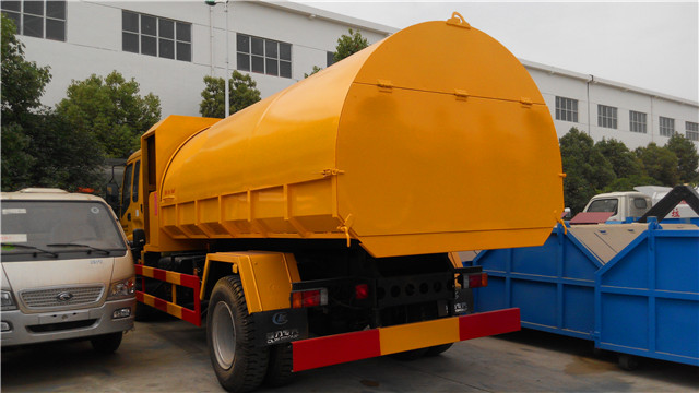 該車是尼日利亞用戶在實地考察了我廠后定購的,該車根據(jù)用戶的實際使用環(huán)境經(jīng)過了特殊設(shè)計:密封垃圾箱設(shè)計成了橢圓形,便于雨水流走,另外,根據(jù)實際使用需要,在垃圾斗的前面還設(shè)計有一個乘人間,便于垃圾清運(yùn)人員的乘坐。