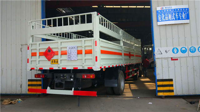 東風(fēng)天錦小三軸8.6米氣瓶運(yùn)輸車采用東風(fēng)天錦前四后四底盤,也叫東風(fēng)天錦前四后四氣瓶運(yùn)輸車,該車采用康明斯210馬力發(fā)動機(jī),整車尺寸(11.1米*寬2.55米*高3.04米),廂體內(nèi)尺寸長8.6米*寬2.45米*高0.8米,采用倉欄式結(jié)構(gòu),該車為危險(xiǎn)品貨物運(yùn)輸車,用于運(yùn)輸具有獨(dú)立容器(瓶)包裝的易燃?xì)怏w(罐(瓶)裝壓縮氫、液化石油氣),類項(xiàng)號為2.1,和非易燃無毒氣體(罐(瓶)裝二氧化碳,氧氣,氮?dú)?氬氣),類項(xiàng)號為2.2。