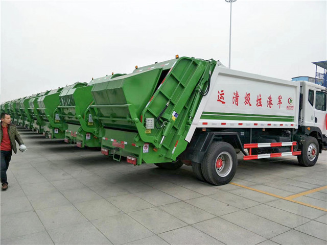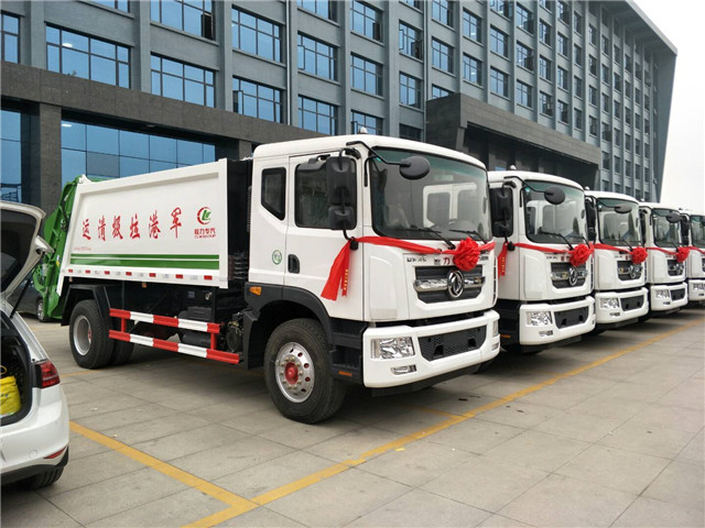 此次軍港采購的這些壓縮式垃圾車采用東風多利卡D9系列駕駛室底盤改裝,垃圾箱容積12立方米,康明斯180馬力發(fā)動機,后帶斗翻轉機構,帶PLC一鍵控制,操作方便。