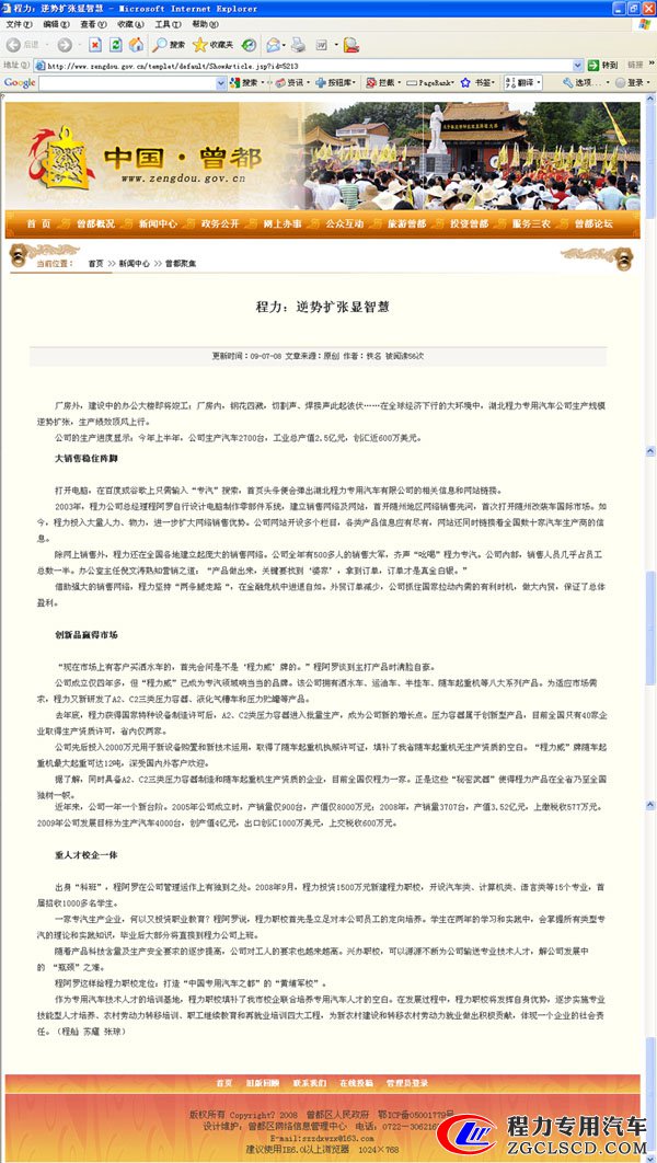 湖北程力專用汽車公司獲曾都政府網(wǎng)重點(diǎn)關(guān)注