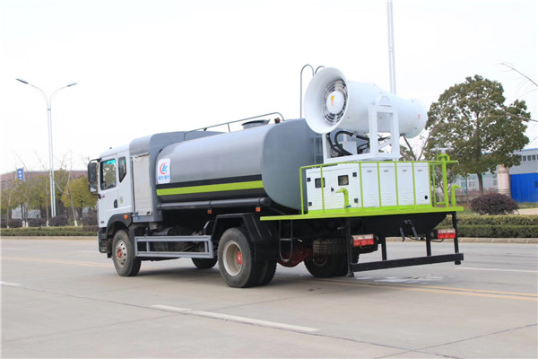 改裝配置:罐體用4MM碳鋼板制作,罐內(nèi)隔板具有防波作用,以減低灑水車行駛時(shí)罐體液體的沖擊。整車帶一個(gè)專用灑水泵(垂直最大吸程6米),灑水寬度14米,射程28米。多功能灑水車配備2個(gè)前沖(噴)(能將路面泥巴、塵土、垃圾沖干凈);2個(gè)后灑(能均勻地將水灑在路面,一次灑水寬度14米)、2個(gè)側(cè)噴(花灑)(能均勻地將路旁綠化帶澆灌)、帶1個(gè)后工作平臺(tái),平臺(tái)上安裝1個(gè)綠化灑水高炮(灑水炮可全方位旋轉(zhuǎn),可連續(xù)調(diào)成直沖狀、大雨、小雨、毛毛雨,霧狀可調(diào)節(jié)沖洗高大樹木),引水時(shí)間<5min,流量90m3/h。帶1個(gè)消防接頭,帶1個(gè)自流閥,1個(gè)過濾裝置、人性化爬梯及側(cè)防護(hù)欄,安裝灑水音樂喇叭。