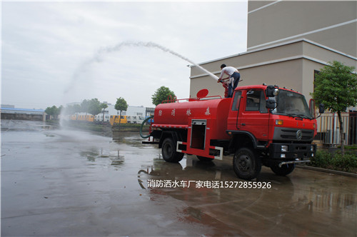 湖北程力消防灑水車安裝消防車專用消防泵、消防炮、消防取力器。帶前沖后灑,帶側(cè)噴,罐體后帶工作平臺,平臺上安裝綠化灑水炮,灑水炮可全方位旋轉(zhuǎn),可連續(xù)調(diào)成直流狀、霧狀、大雨、小雨、毛毛雨,帶安全護(hù)欄。罐體頂部安裝消防水炮。帶消防接口,可通過消防栓進(jìn)水,帶自流閥,隨車選裝20米消防綠化卷盤,可噴灑農(nóng)藥。有東風(fēng)140消防灑水車(6-8T)、東風(fēng)EQ140/47消防灑水車、東風(fēng)145消防灑水車(裝水8-10T)、東風(fēng)EQ153消防灑水車(裝水10-12T)、東風(fēng)后雙橋1254消防供水車。