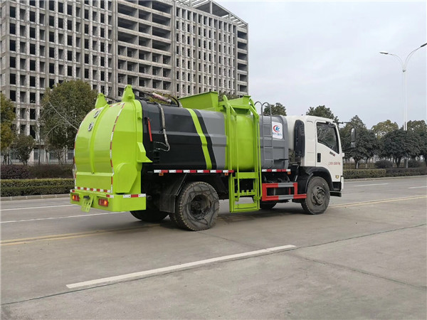 先進的電控系統(tǒng) 采用進口PLC(可編程序控制器)集成控制,控制電路在PLC內(nèi)生成,采用邏輯回路保證各操作指令按順序執(zhí)行,同時保證各操作指令之間互鎖,外部只有線路連接,降低了故障發(fā)生率,避免了誤操作造成的事故,提高了可靠性;特別設(shè)置的緊急制動按鈕可使餐廚垃圾壓填機構(gòu)在任何狀態(tài)或任何位置停止,保障作業(yè)人員、設(shè)備的安全;方便的操作控制 作業(yè)控制盒分別安裝在駕駛室內(nèi)和車尾,駕駛室內(nèi)的作業(yè)控制盒可控制推擠卸料和選擇操作模式(如自動或手動),車尾的作業(yè)控制盒則控制壓填機構(gòu)和翻桶機構(gòu)的作業(yè),使用操作十分方便。特別是在垃圾填埋場,作業(yè)人員無須下車即可完成卸料和污水排放。可根據(jù)用戶要求選裝有線遙控裝置;多種翻桶(斗)機構(gòu) 不同用戶可根據(jù)不同的餐廚垃圾搜集方式,選裝不同的翻桶(斗)機構(gòu):翻標準餐廚垃圾鐵桶ZBT59003-88(300升)、塑料餐廚垃圾桶(240升)、隨車小餐廚垃圾斗(800升)、密封遮式餐廚垃圾斗(1400升)、大餐廚垃圾斗(3350升)。