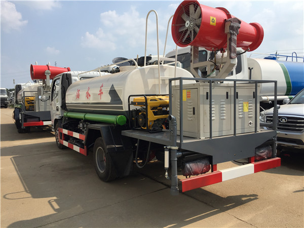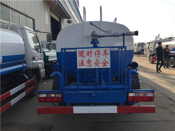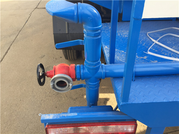 灑水車(chē)前裝有鴨嘴形噴嘴或圓頭沖嘴,后面裝有圓柱形灑水噴嘴或蓮蓬頭噴嘴,后部有一個(gè)工作平臺(tái),裝配有水炮。后部還可裝8個(gè)噴嘴(選裝)。