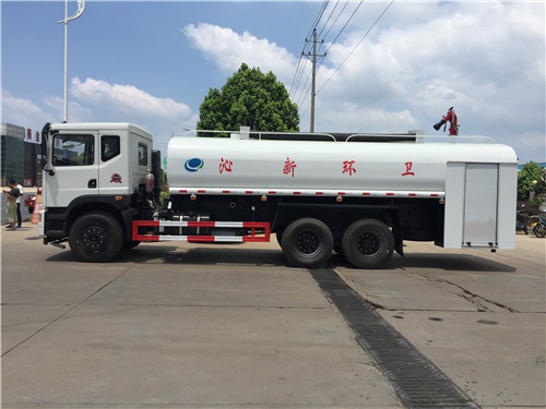 該車采用東風康明斯210馬力柴油發(fā)動機,10.00-20輪胎,帶方向助力,不帶空調,斷汽剎,6檔變速箱, 6噸前橋, 10噸后橋,整車外形尺寸: 9950/2490/3200,總質量(kg):24700額定質量(kg):15400整備質量(kg):9105 ,該車罐體有效容積:16噸-20噸