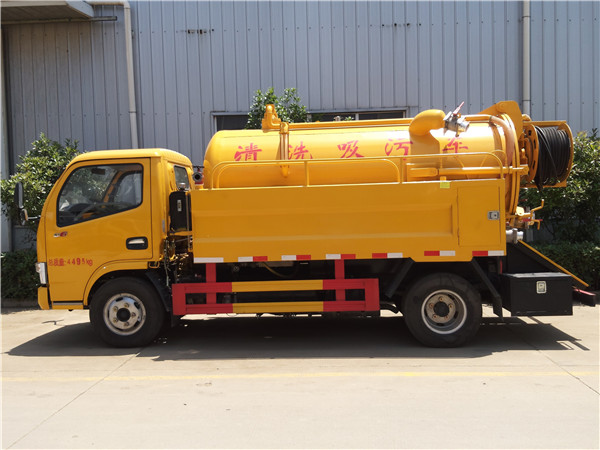 3. 高壓清洗吸污車采用液壓頂開排污結(jié)構(gòu),排污效率和排污效果要好。