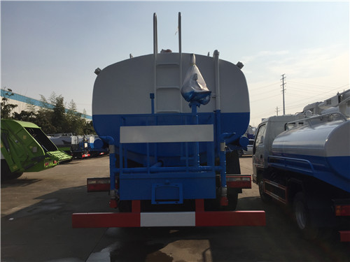 3、側(cè)噴、后灑――位于灑水車(chē)后工作平臺(tái)左右兩側(cè),側(cè)噴,即向側(cè)面噴灑的裝置,后灑,則是向后部噴灑的裝置,兩者水流形態(tài)都呈扇形,常用于道路壓塵降溫加濕,噴出的水薄而均勻,可避免噴灑后污水橫流的現(xiàn)象。