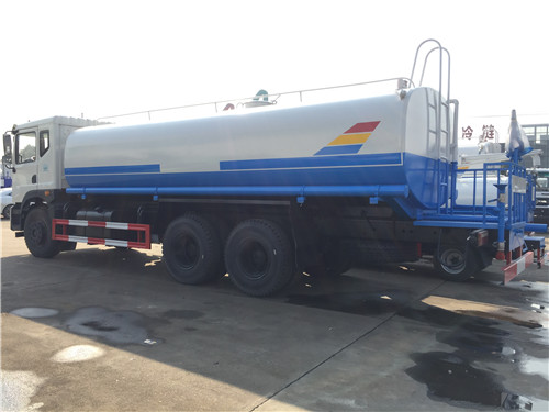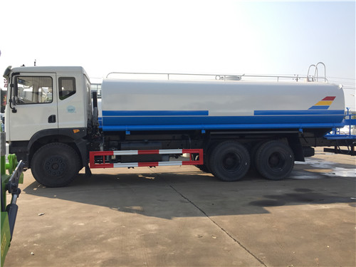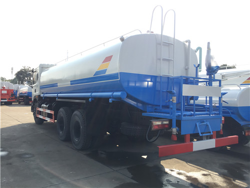 1、灑水車(chē)前沖、前噴――前沖標(biāo)配的是三彎前沖噴頭,可任何調(diào)節(jié)灑水方向,常用于路面灑水,一般位于駕駛室前下方,主要噴射柱狀水流,射程14米,可將路面的垃圾及雜物沖至道路兩旁供清掃清潔,同時(shí)水遇到灰塵后結(jié)伽,防止車(chē)輛來(lái)往造成的揚(yáng)塵。也可選裝前噴噴頭,即用鴨嘴噴頭替代三彎前沖,噴出的水流呈扇形,像一把水鏟一樣,可以將路面沖洗得更為干凈,但相應(yīng)噴灑距離縮小,適合單邊道路的沖洗。