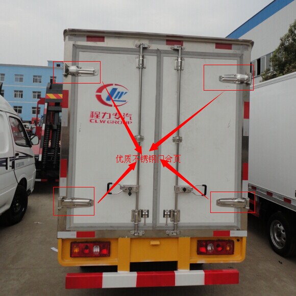 ②可改裝肉鉤冷藏車廂(標(biāo)配4條加厚鋁合金滑道,不銹鋼固定件,不銹鋼螺絲,不銹鋼固定環(huán),不銹鋼304材質(zhì)雙肉鉤)廂體保溫性好,整體強度大。